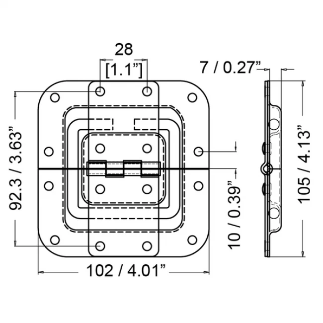 Con tapa de bisagra estancia en 7mm / 1/4″ plato llano.
